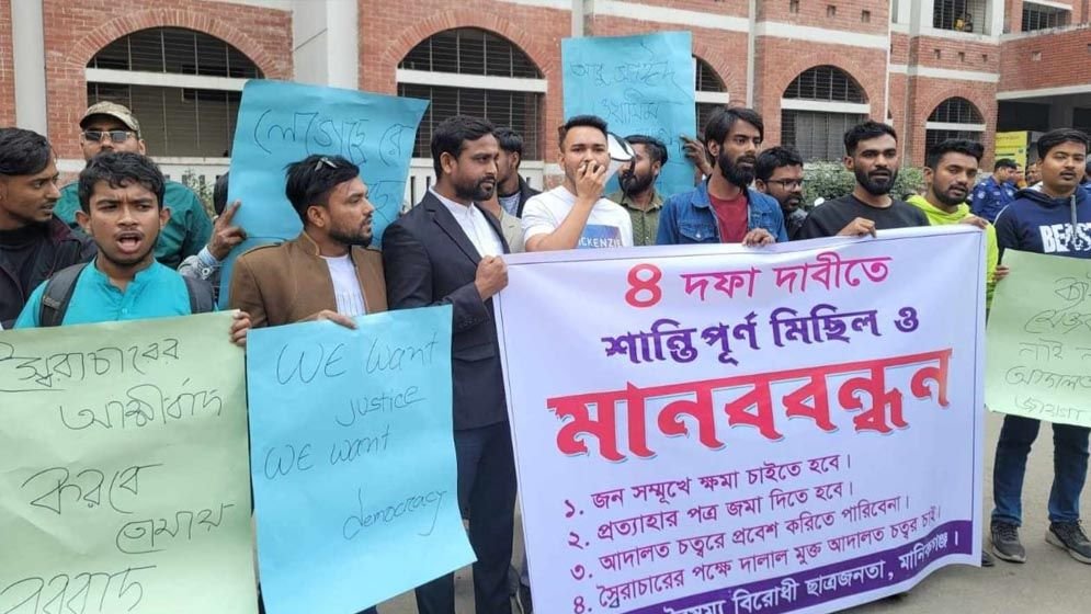 আইনজীবী মেজবাউল হকের এমন কাজে ক্ষুব্ধ স্থানীয়রা। বিএনপিপন্থি এই আইনজীবীর বিরুদ্ধে বিক্ষোভ মিছিল ও মানববন্ধন কর্মসূচি করেছেন বৈষম্যবিরোধী ছাত্রজনতা। বুধবার (২৯ জানুয়ারি) দুপুর ১২টার দিকে জেলা চিফ জুডিশিয়াল ম্যাজিস্ট্রেট আদালতের সামনে এই কর্মসূচি পালন করে তারা। এ সময় ওই আইনজীবীর অপসারণসহ চার দফা দাবি জানানো হয়।